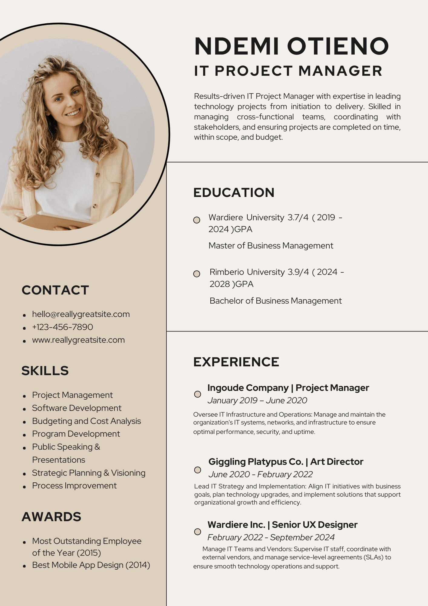 Beige Minimalist CV Template