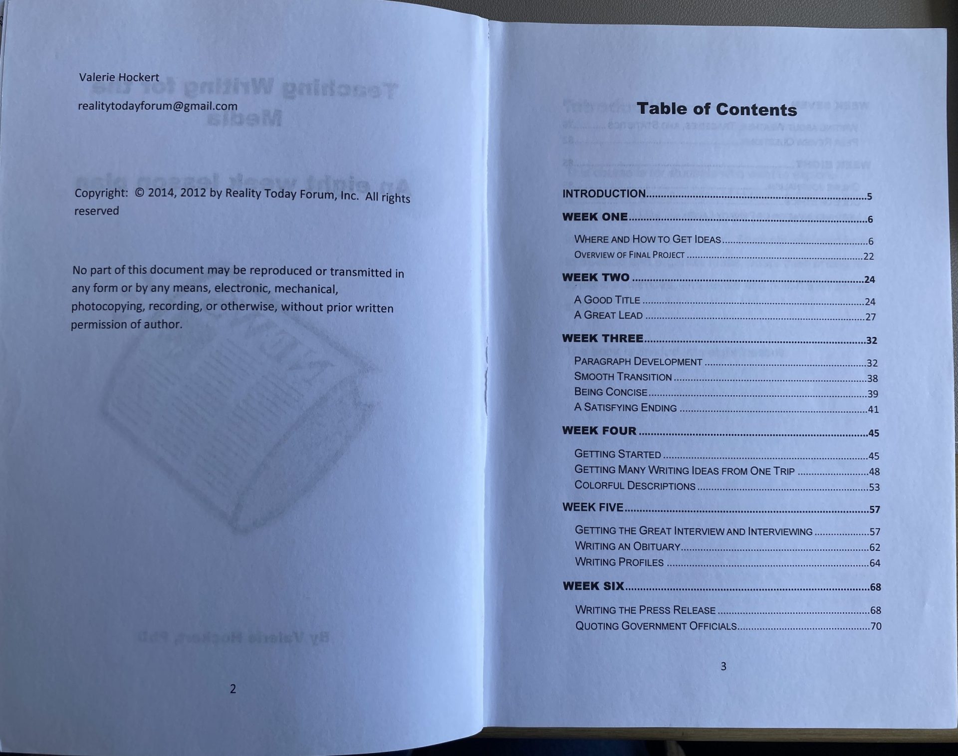 Teaching Writing for the Media: An Eight Week Lesson Plan by Valerie Hockert